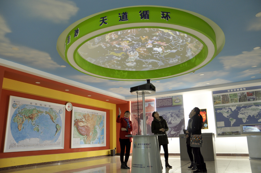 | 其中多媒体球幕投影演示仪,能够立体、动态、直观的显示各种地理、天文等科学知识,在这里学生们可以近距离的观察八大行星的运行方式,太阳、地球和月球的空间关系。学生可在这里直观了解到系外星系、黑洞及暗物质等宇宙知识。 |